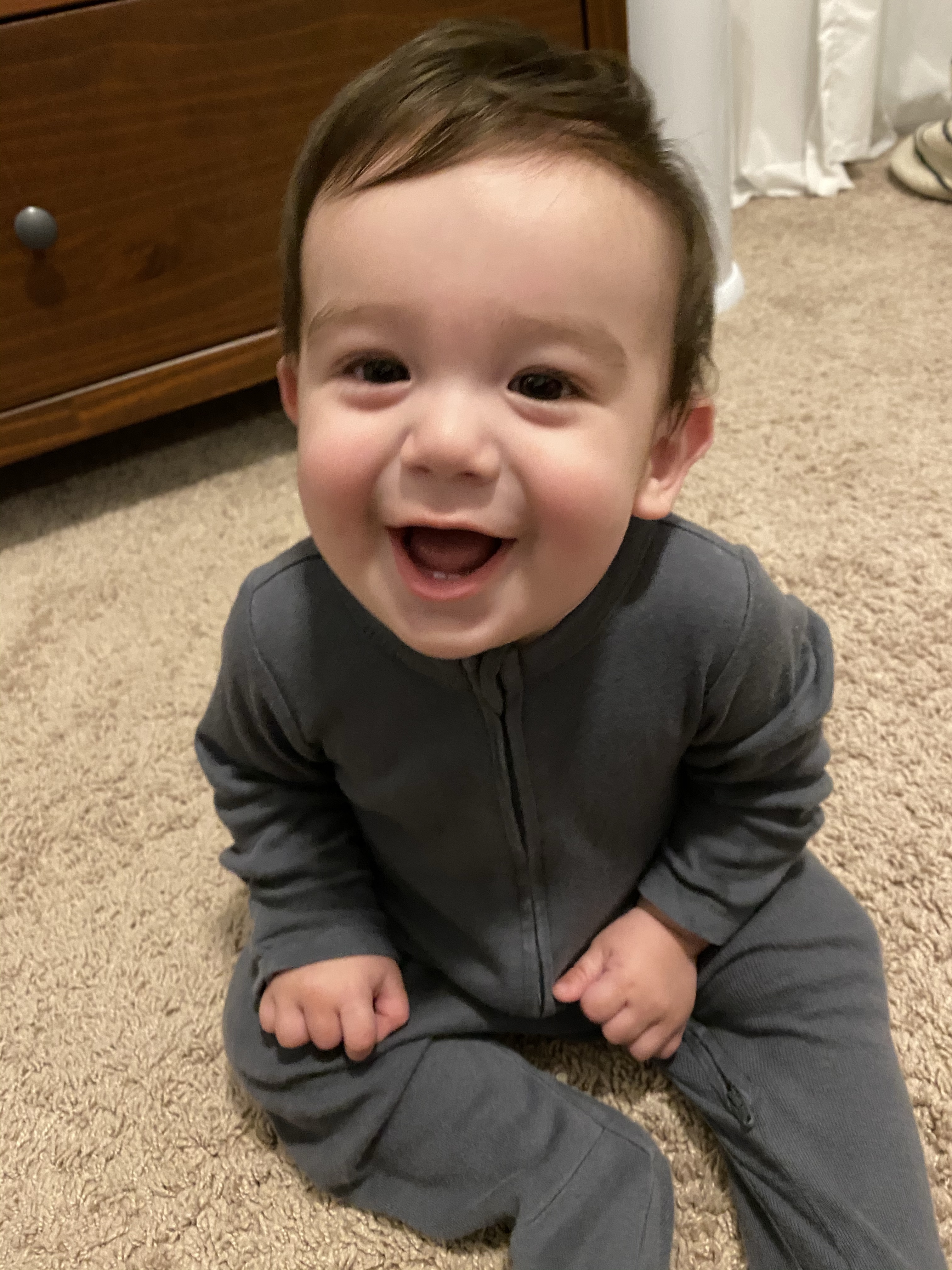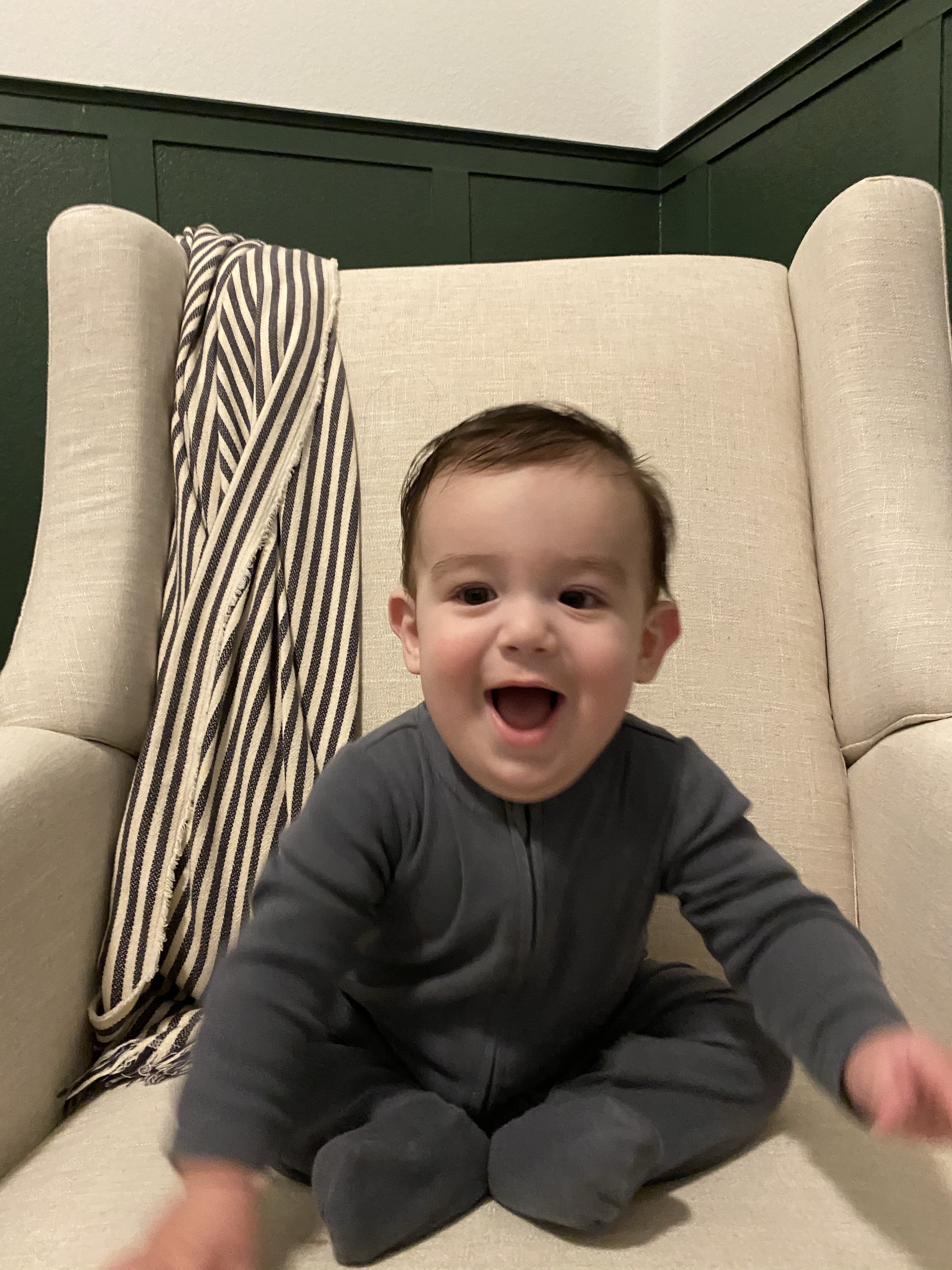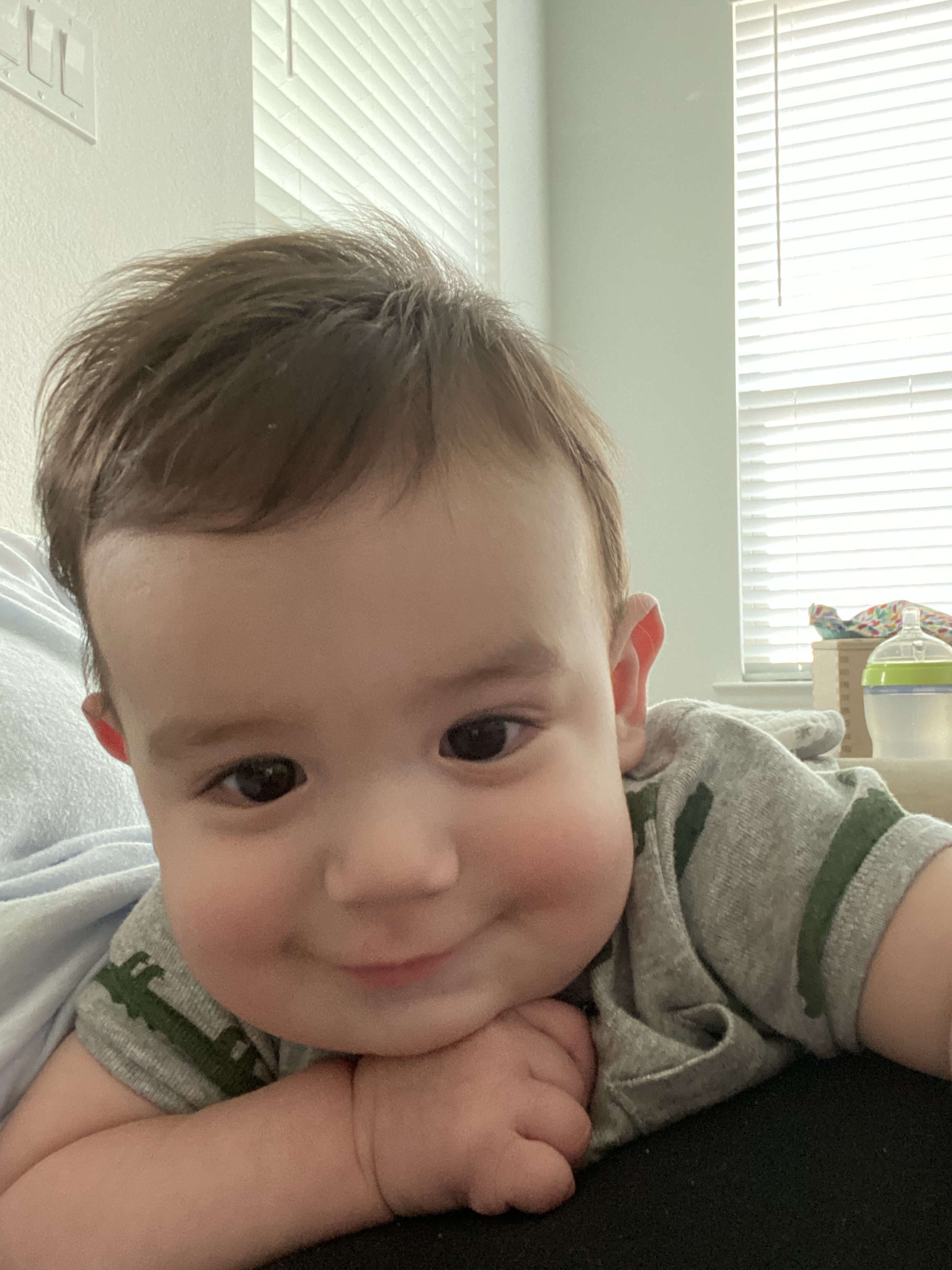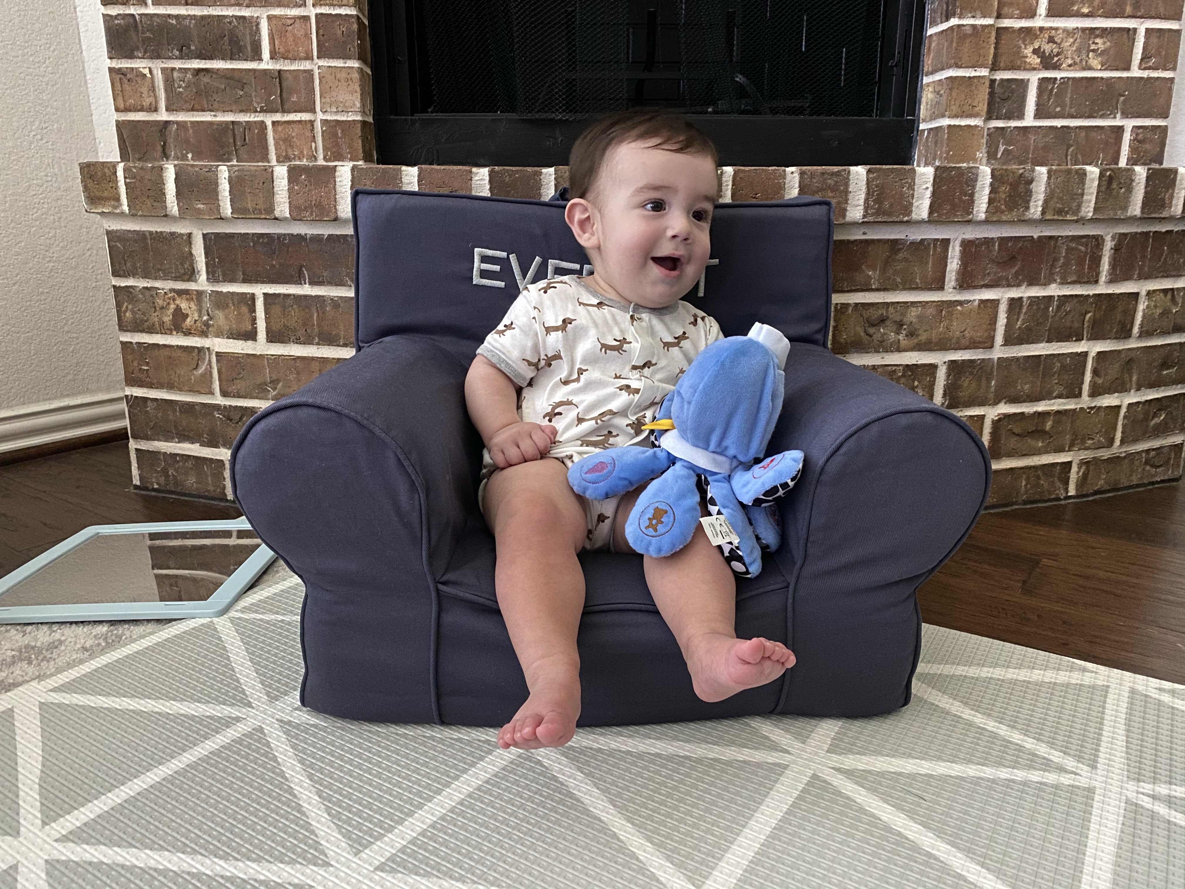He started giving us this toothy, scrunched face smile when he’s really happy and acting silly. Everett started getting himself into some predicaments with furniture around the house and watching him figure it out has been so fun!