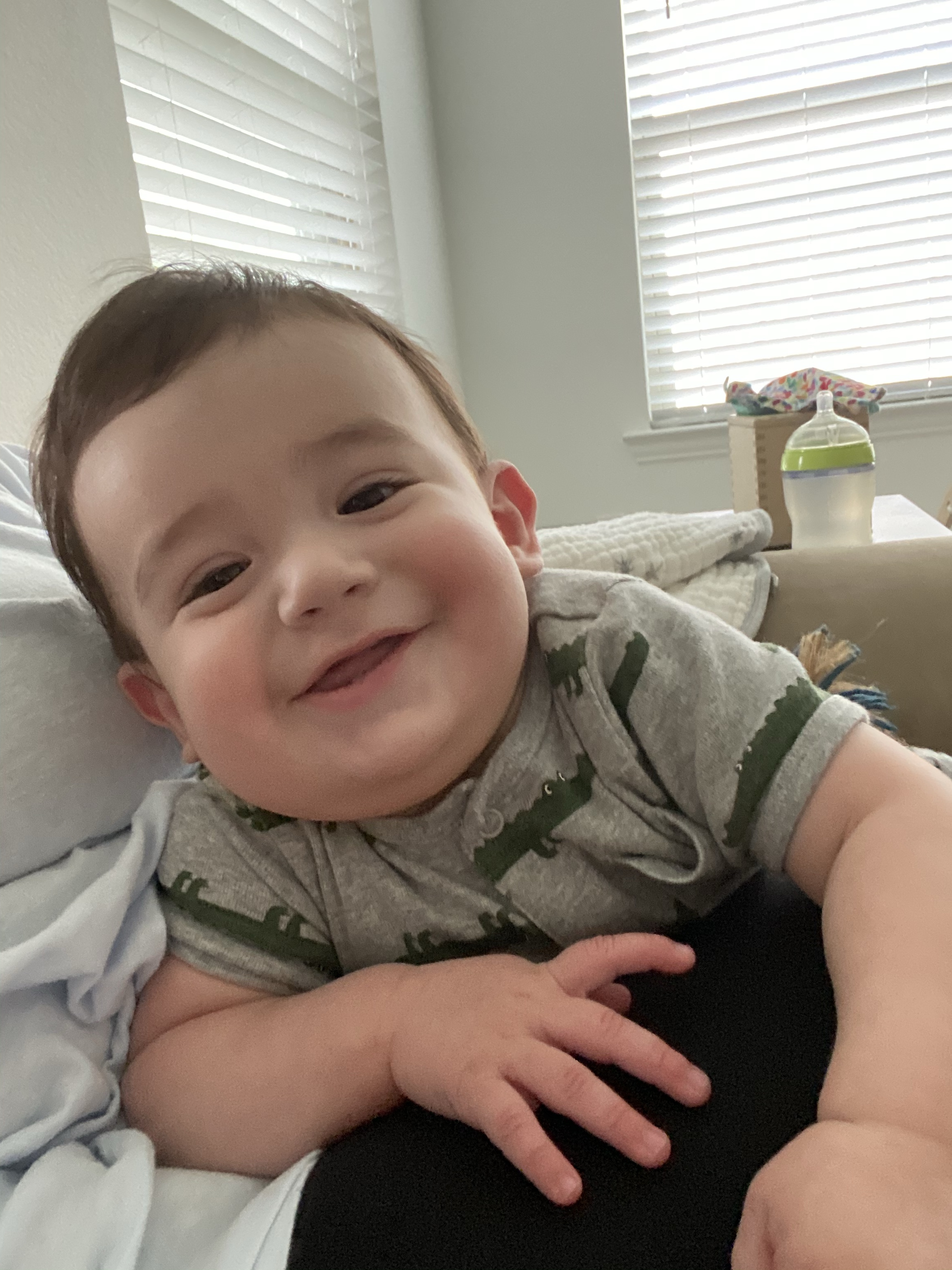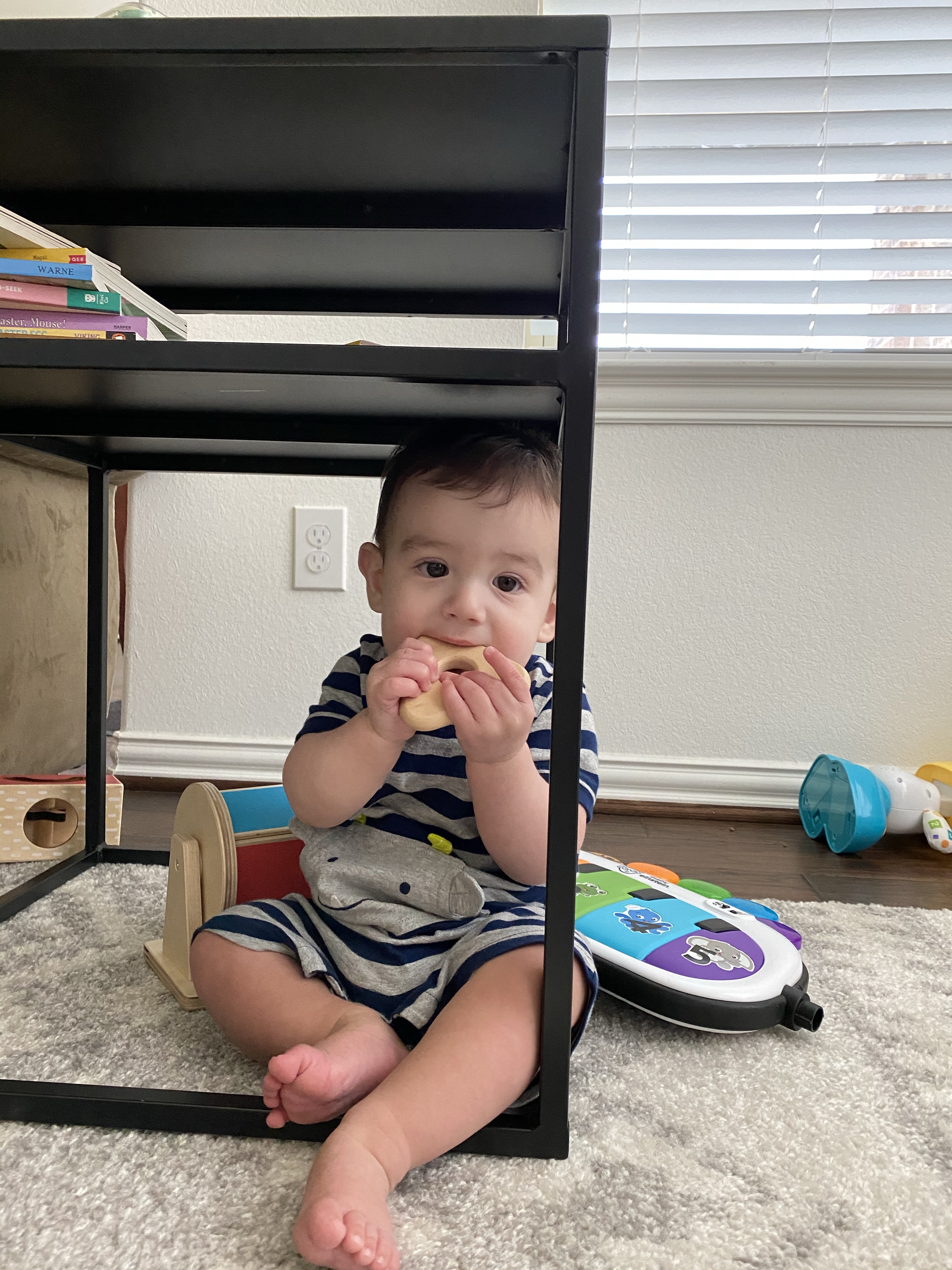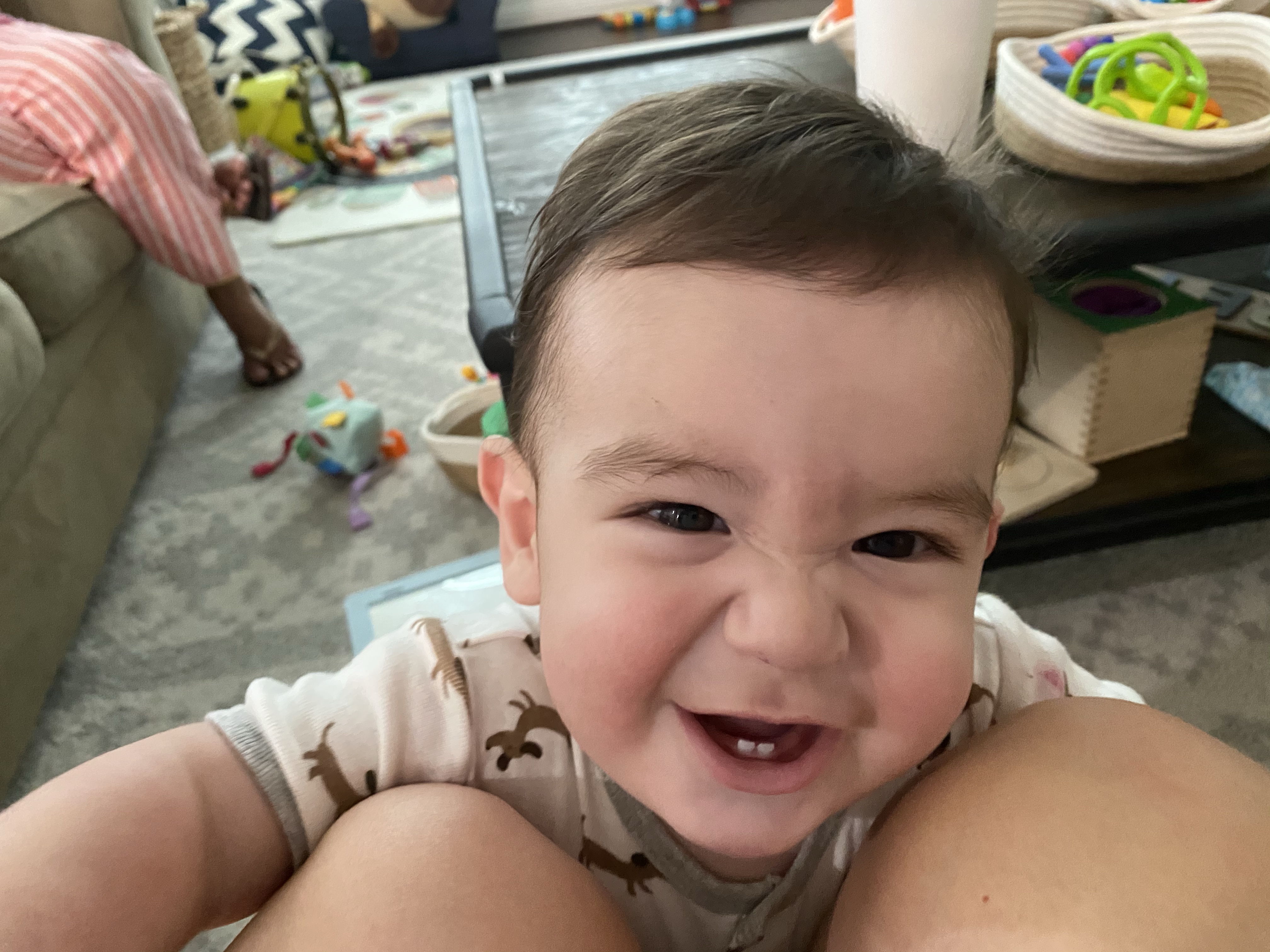 He started giving us this toothy, scrunched face smile when he’s really happy and acting silly. Everett started getting himself into some predicaments with furniture around the house and watching him figure it out has been so fun!