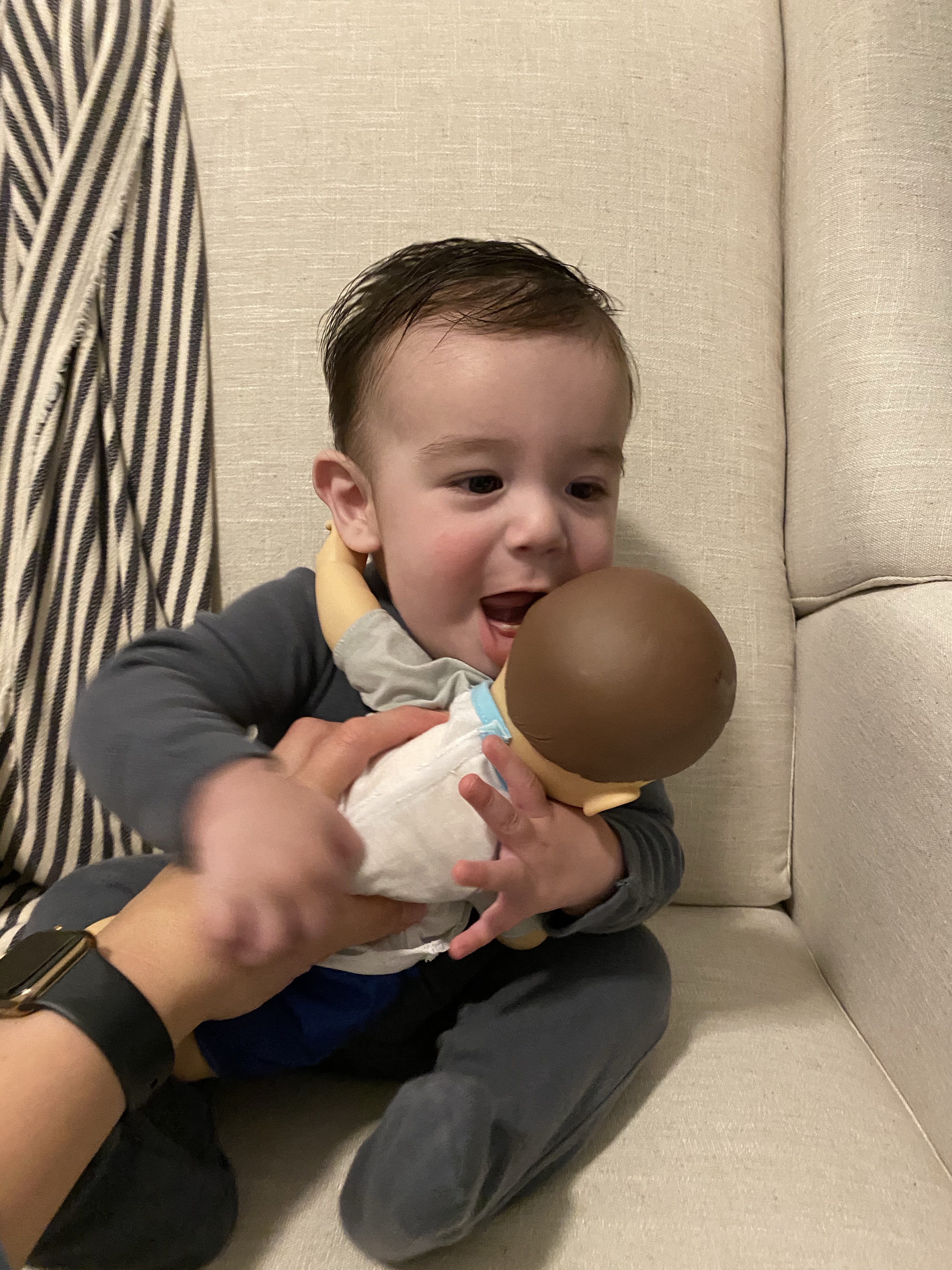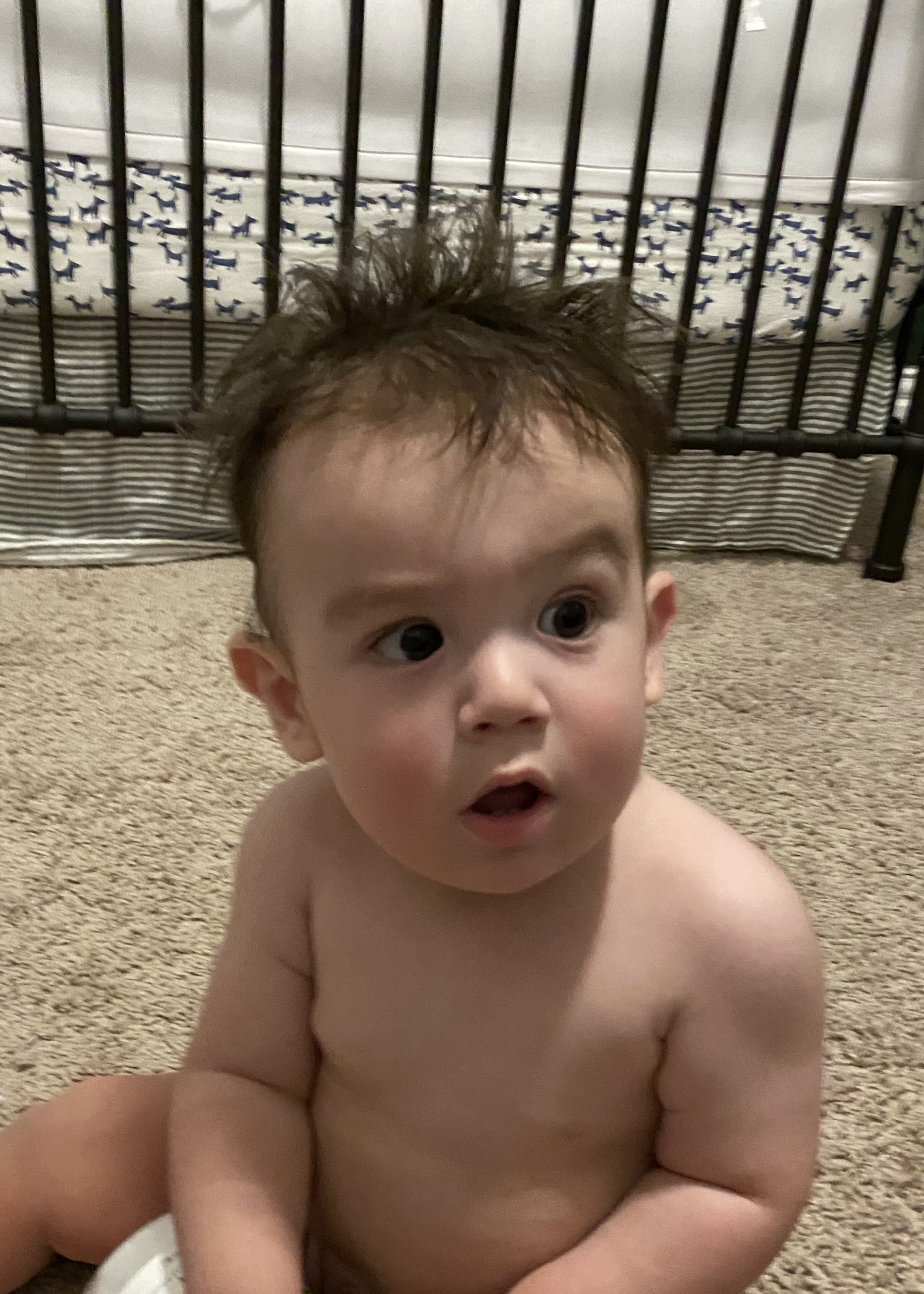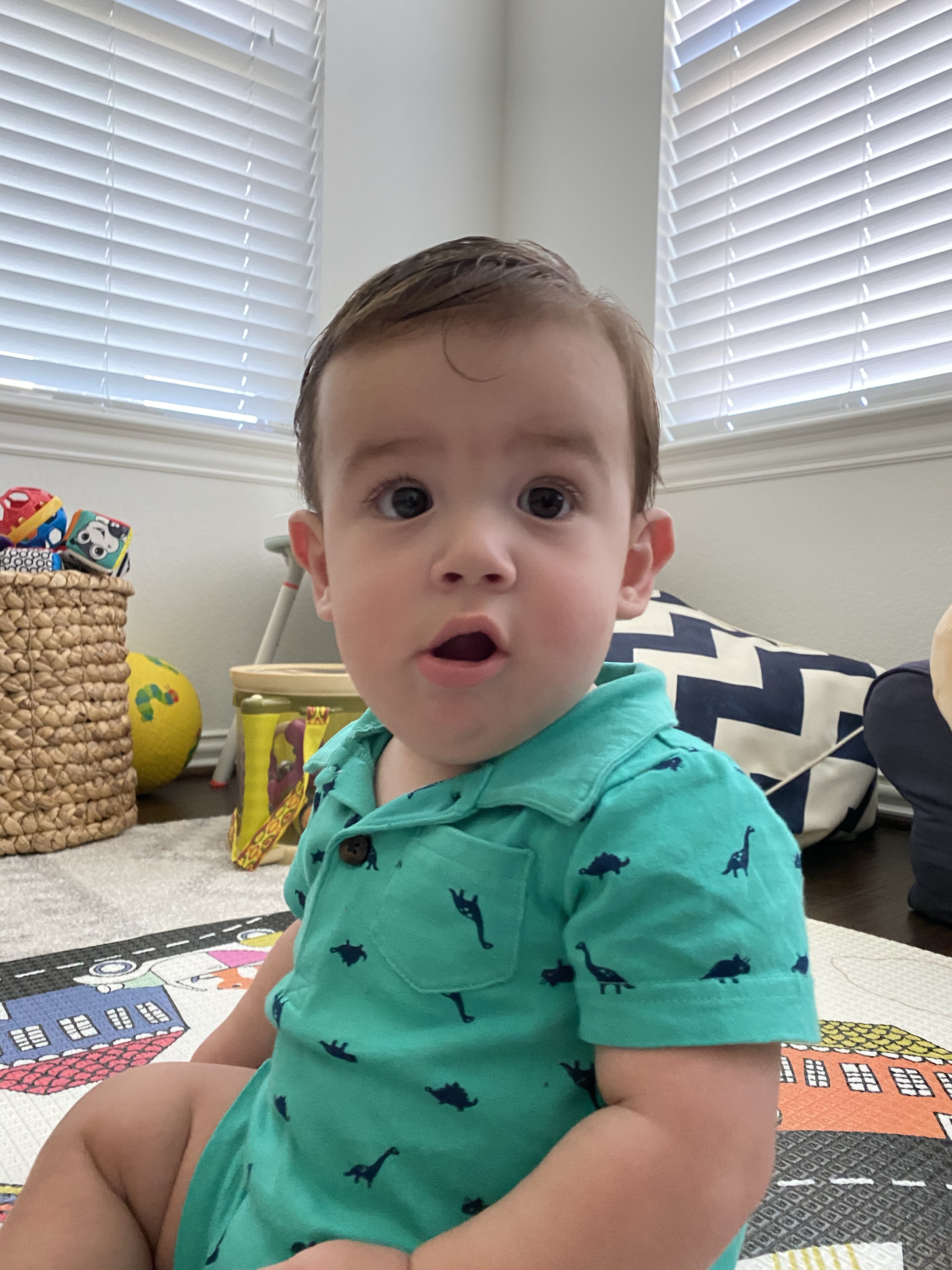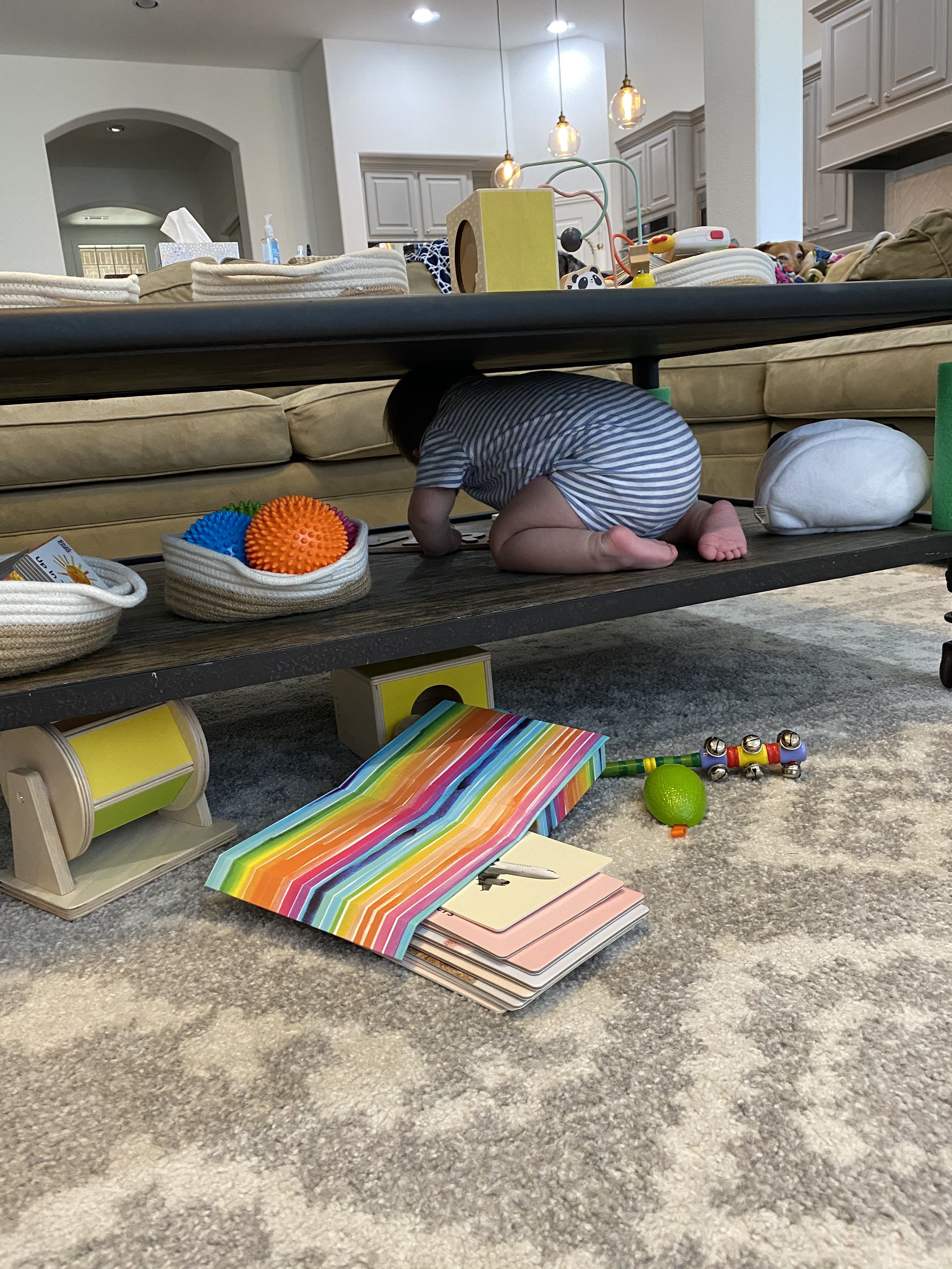 He started giving us this toothy, scrunched face smile when he’s really happy and acting silly. Everett started getting himself into some predicaments with furniture around the house and watching him figure it out has been so fun!